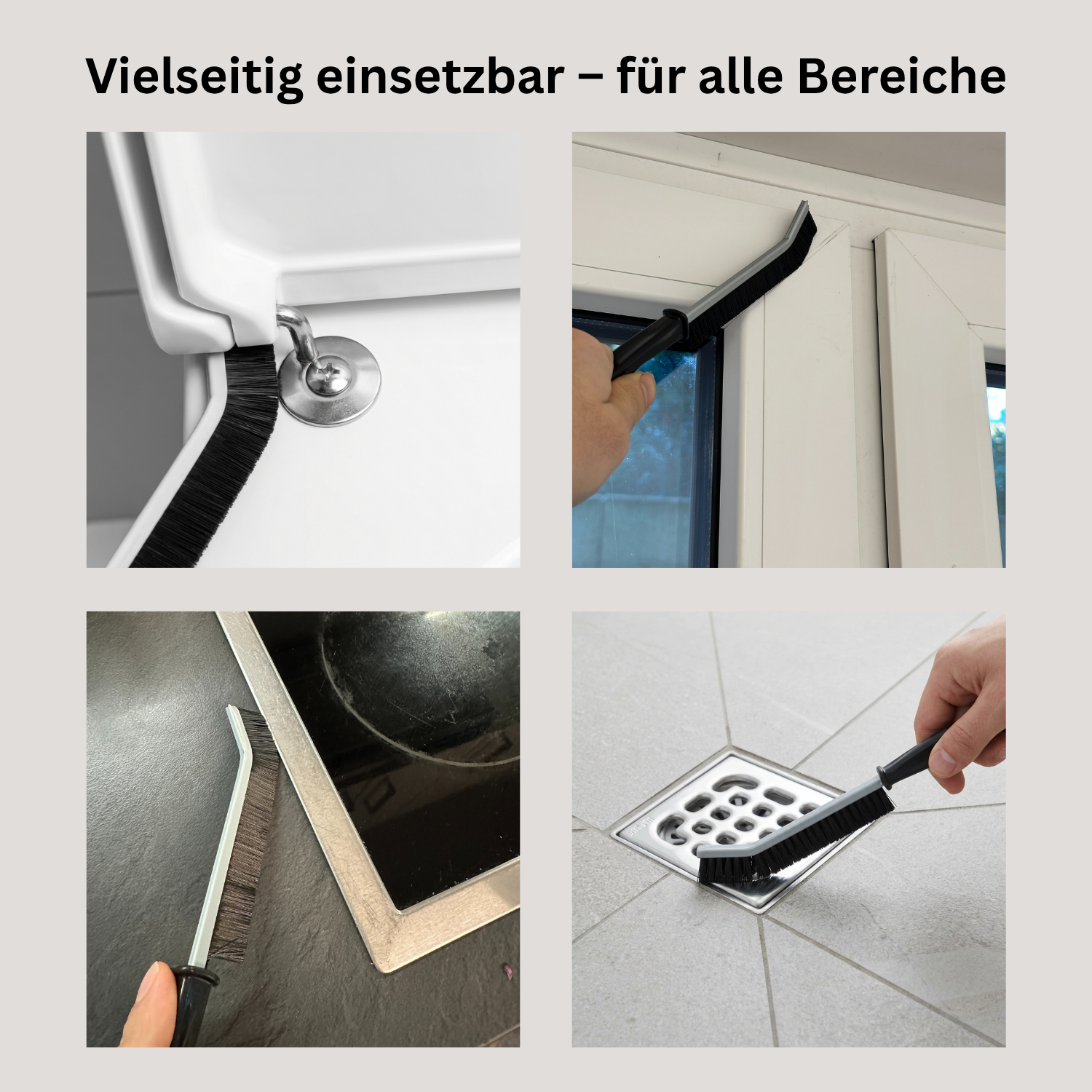 Die CLARVO Fugen- & Detailbürsten wurden speziell für Bereiche entwickelt, die mit normalen Bürsten kaum zu erreichen sind – ideal für Bad, Küche, Auto und Fensterrahmen.